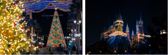 2025环球冬季假日主题活动高22米的标志性圣诞树(左),霍格沃茨™城堡圣诞魔法庆典(右)
