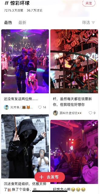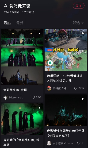 这一趋势在社交媒体上也得到了印证:其秋季主题活动#惊彩环球#话题在小红书上的浏览量已累计超过7000万;今年秋季首次推出的“食死徒™来袭”黑魔法沉浸式体验,以高度还原的氛围营造和演员近距离互动,迅速成为当季现象级体验,其同名话题#食死徒来袭#在小红书上的浏览量接近900万,聚集大量用户自发分享与创作内容。