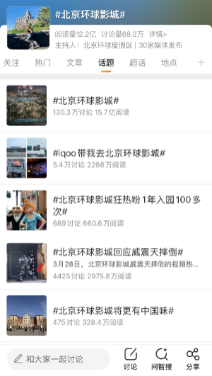 #北京环球影城#话题新浪微博累计阅读量超12亿